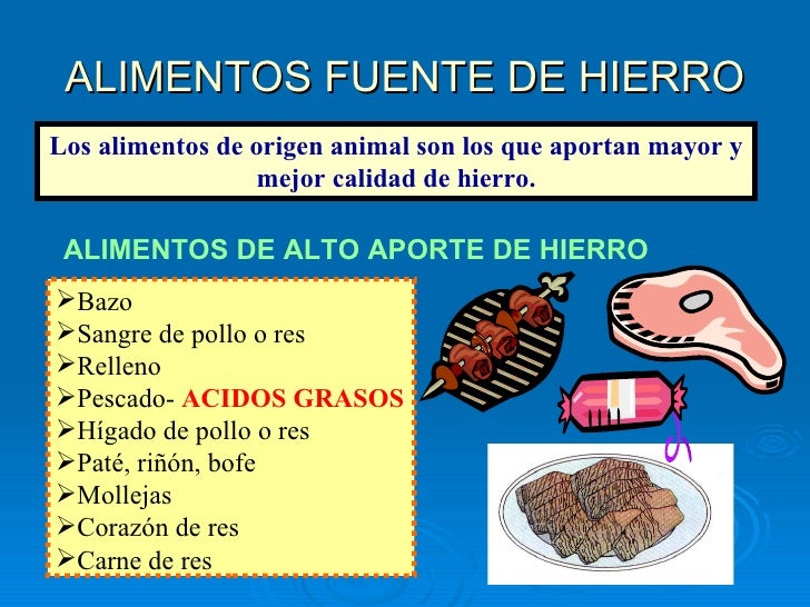 Por consiguiente es recomendable evitar las variantes ricas en grasa como el embutido de. El hierro proveniente de los alimentos de origen animal (hierro hem) es considerado de alta biodisponibilidad, es decir, se absorbe con mayor facilidad y se altera poco ante la presencia de factores inhibidores de la absorción del hierro; Alimentos ricos en hierro de origen vegetal. Por consiguiente es recomendable evitar las variantes ricas en grasa como el embutido de.